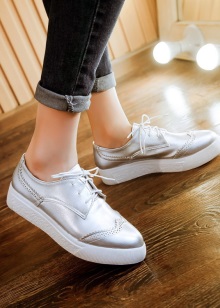 Sneakers on the wedge do not give up their positions for several years. Designers are constantly experimenting with materials and finishes, introducing us to silver sneakers from leather and textiles, with studs, rhinestones, chains, and rivets. Some sneakers are more like shoes, others - sneakers. One thing remains unchanged - the presence of lacing and hidden wedgies.