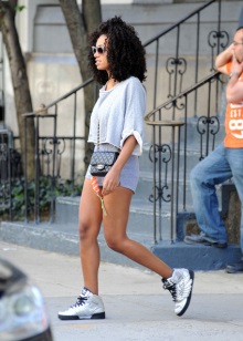 Such sneakers are not suitable for sports, but they can easily enliven any everyday look. The top of these sneakers is classic, but the sole, though even, is not high enough, so they add to your height. Models are pleased with the mixture of textures and materials that add zest to the image.