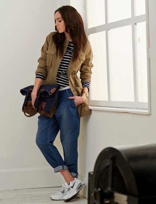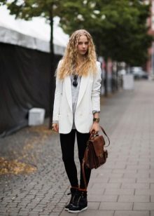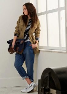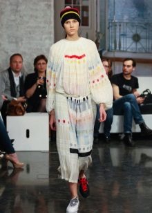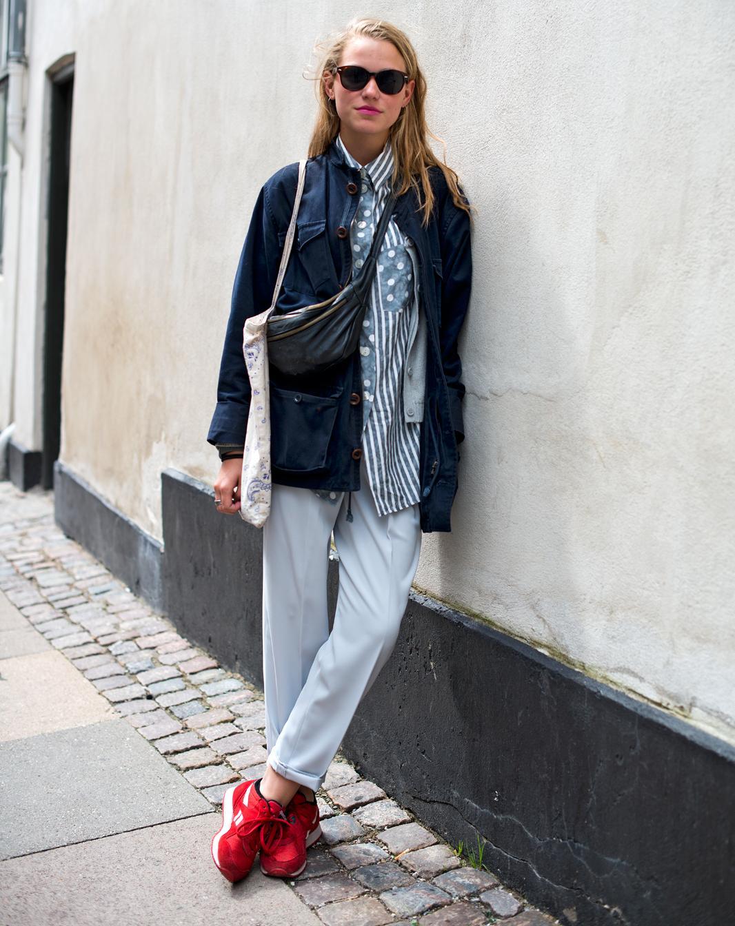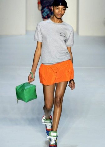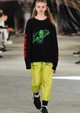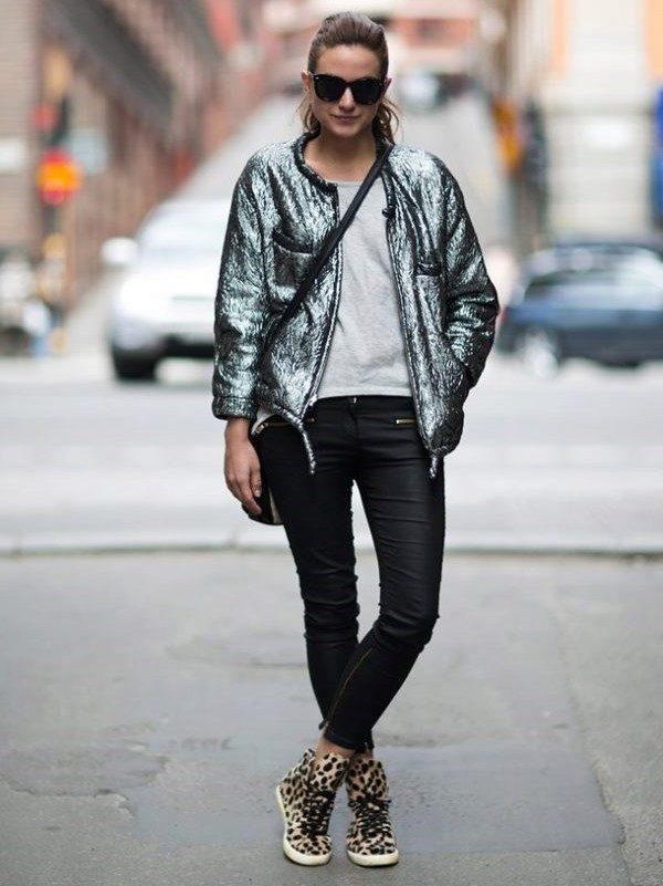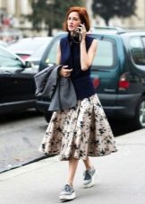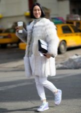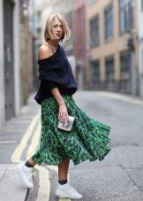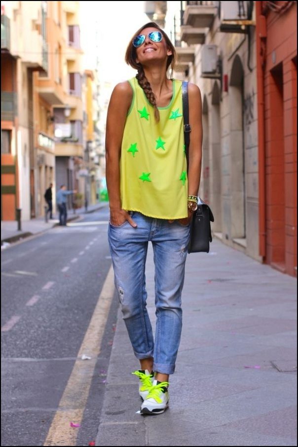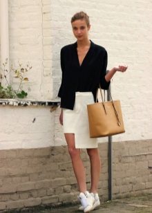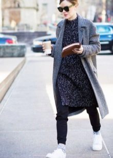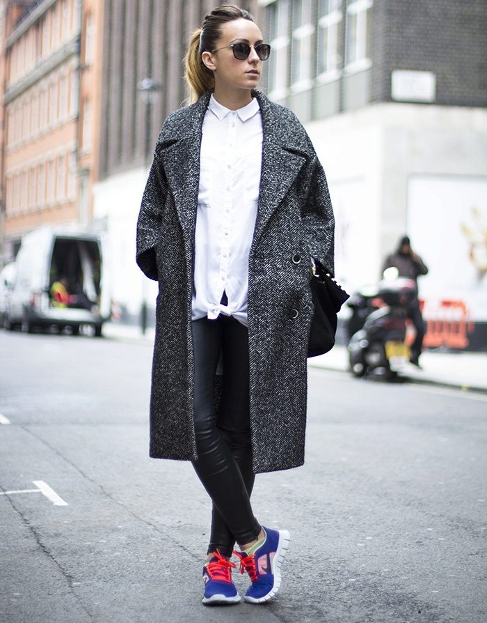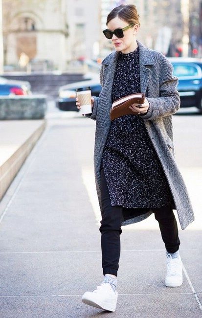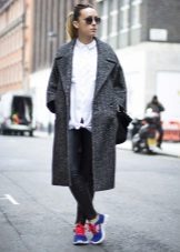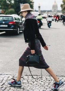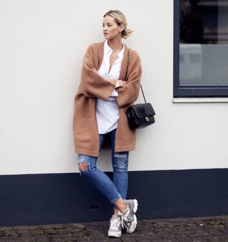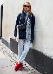 If the sneakers have an acceptable non-voluminous appearance, then the top may be looser, for example, from large shirts, sweatshirts, windbreakers, hoodie.