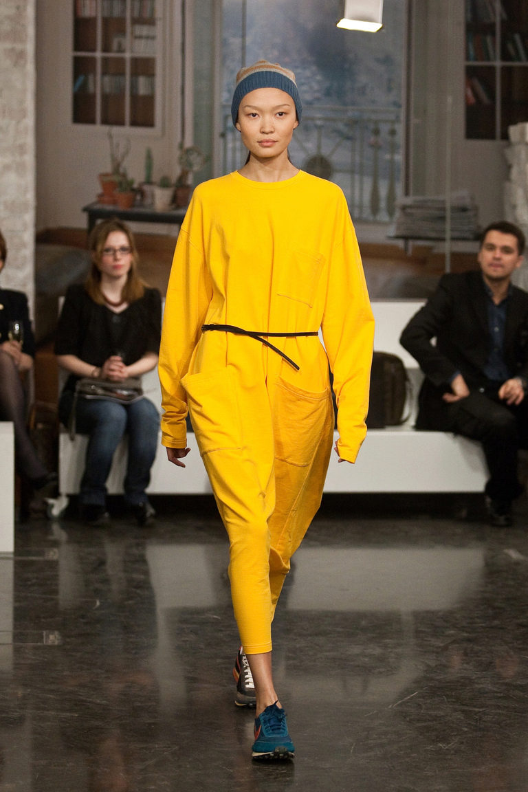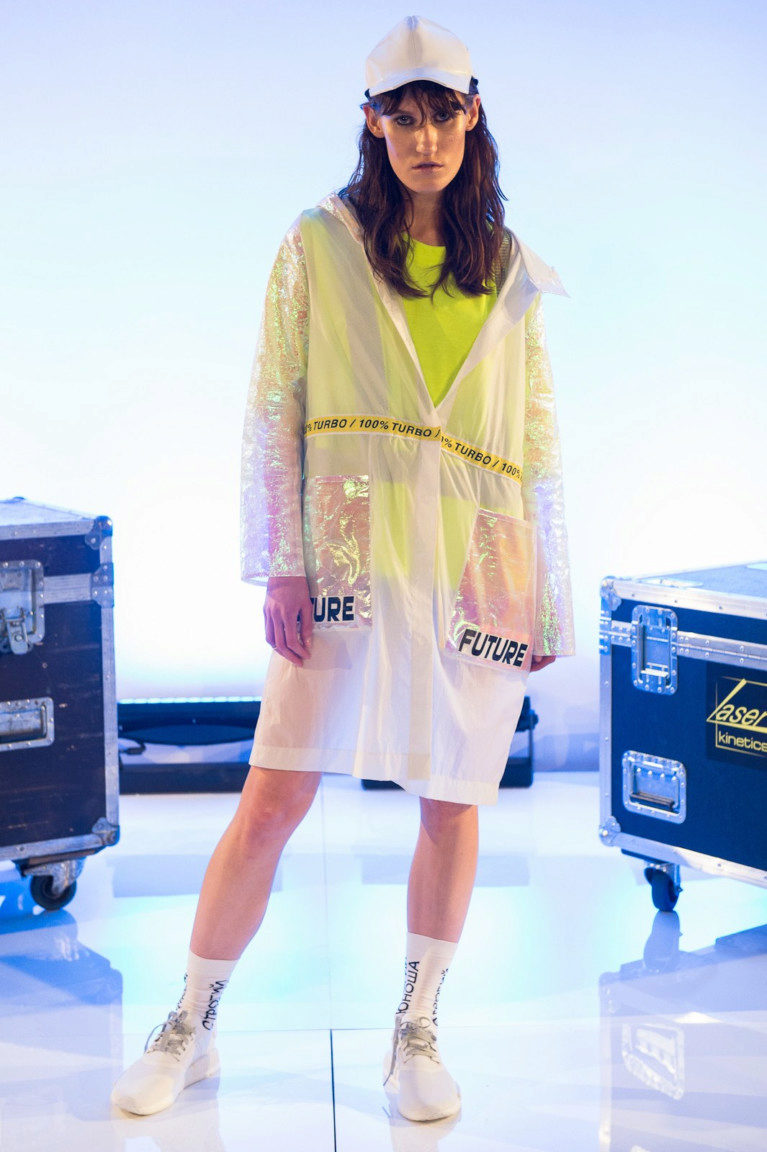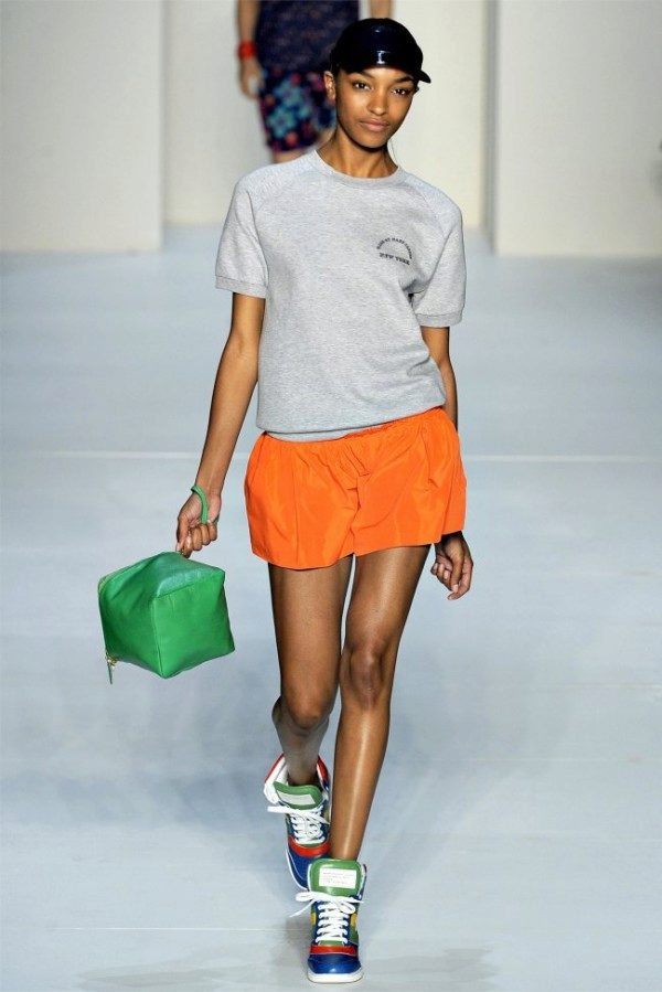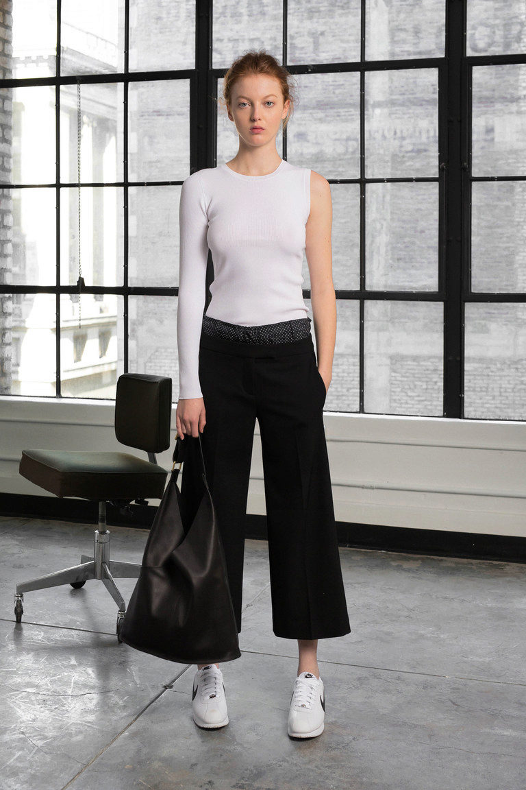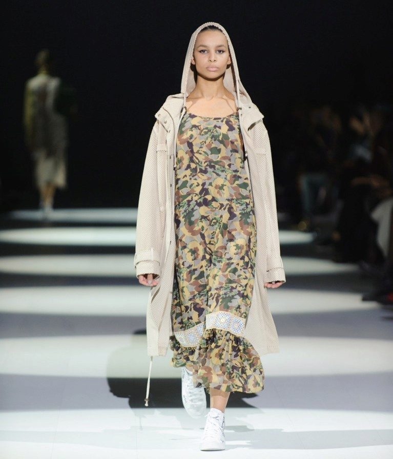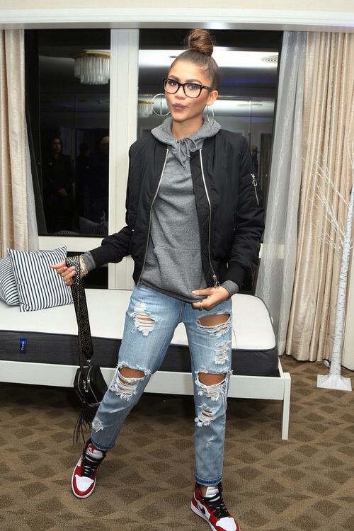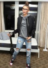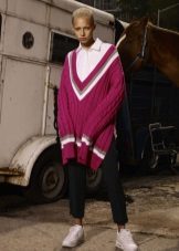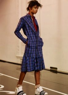 If the sneakers have an acceptable non-voluminous appearance, then the top may be looser, for example, from large shirts, sweatshirts, windbreakers, hoodie.