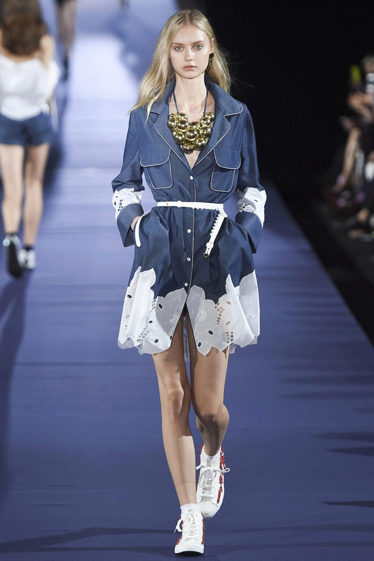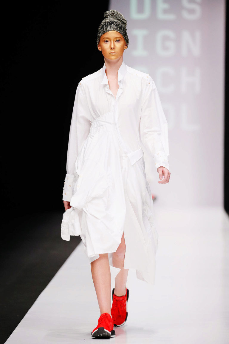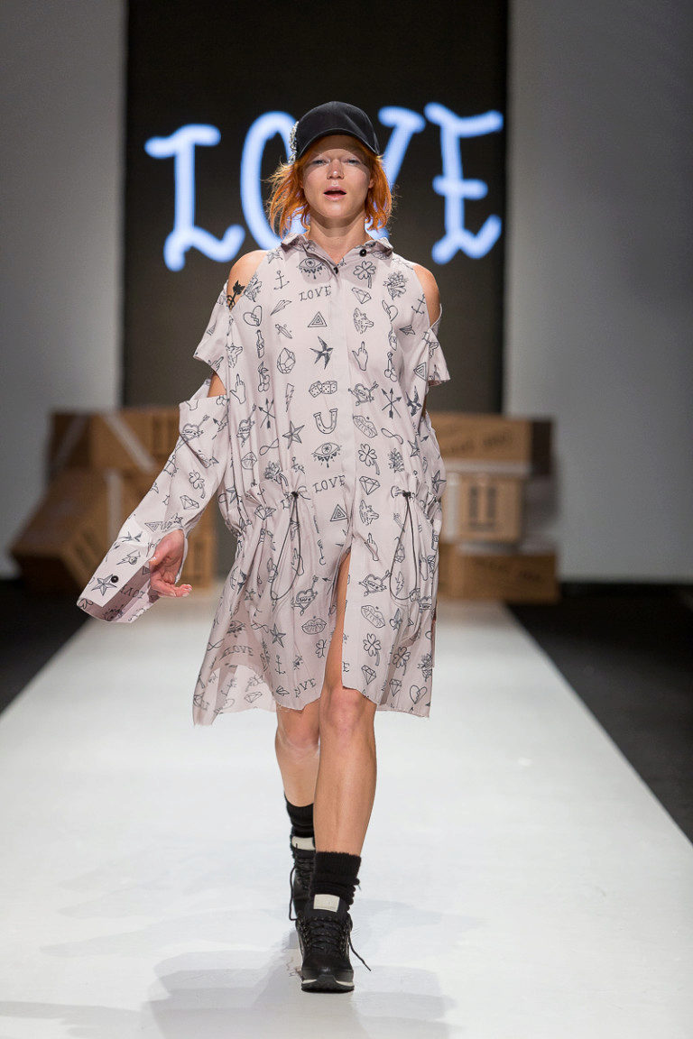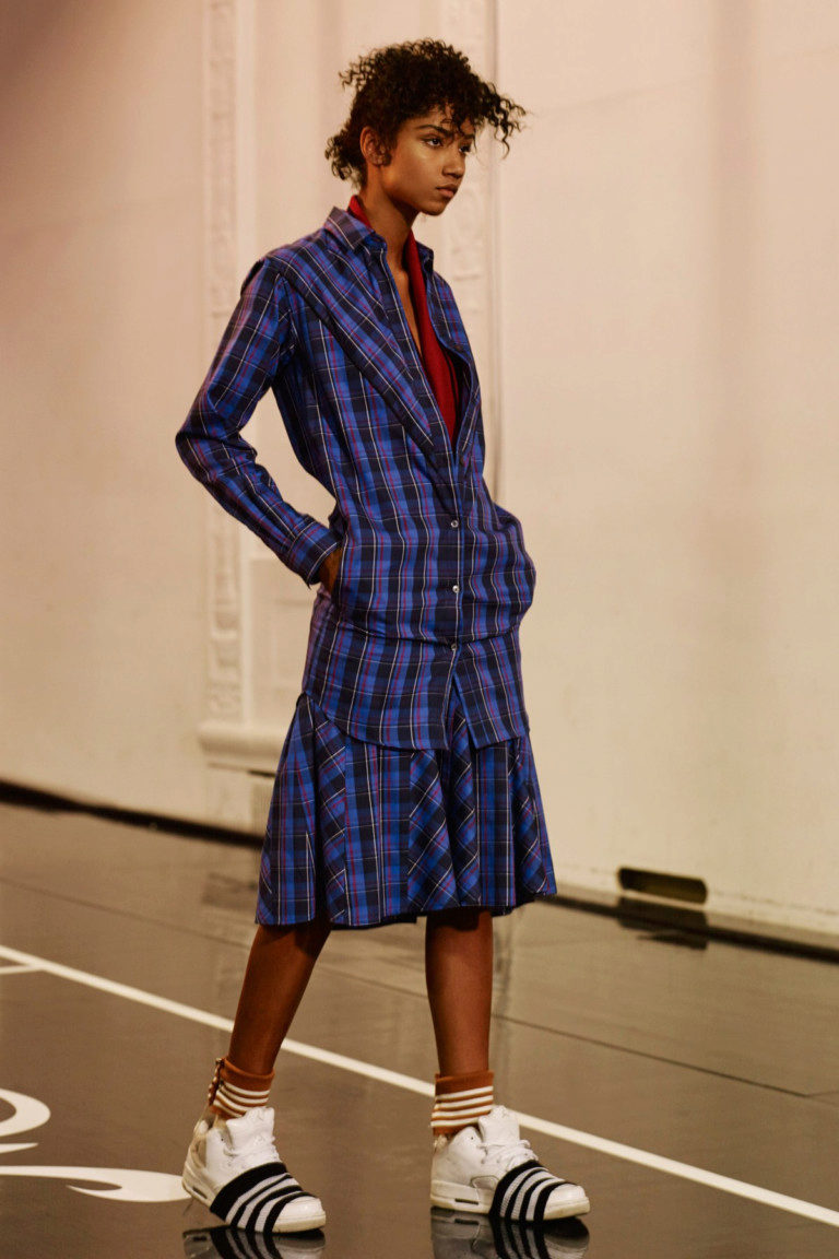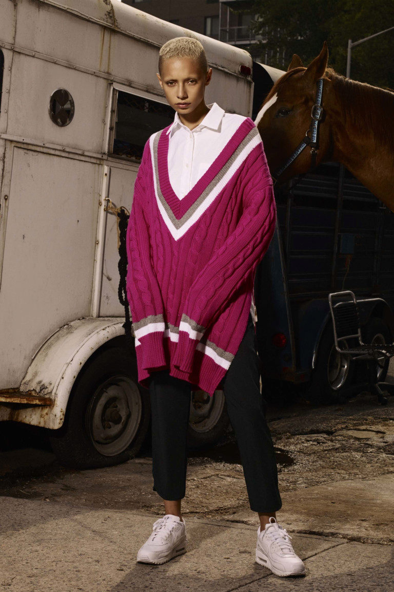 If the sneakers have an acceptable non-voluminous appearance, then the top may be looser, for example, from large shirts, sweatshirts, windbreakers, hoodie.