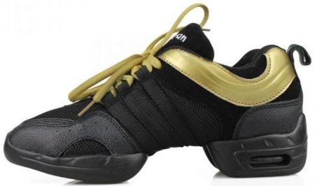 Since dance classes involve a special load on the legs and the need to have a moving foot, specialized sneakers-sneakers for dancing have a special design. They look a little unusual due to the large division at the sole between the toe and the heel. However, such a structure helps to quickly rebuild from one part of the foot to another, as well as to make all the necessary movements, jumps, rotations.