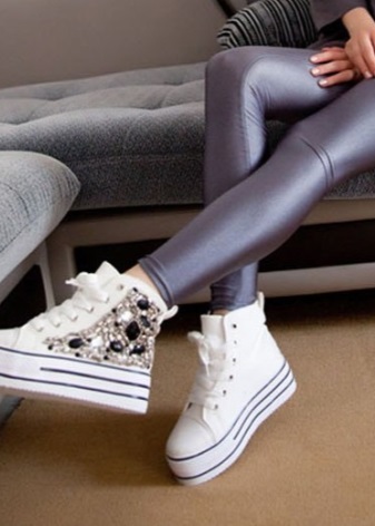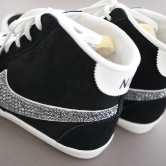 Sneakers with Swarovski stones are considered a real trend. This is an indispensable part in creating a club, extravagant and bright image.