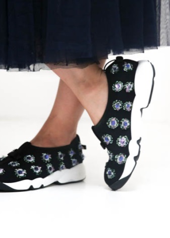 Sneakers have long ceased to be an element of a sports wardrobe. Today, these shoes can be any - from everyday to club. Recently, sneakers with rhinestones have become very popular. Their advantage is that they give the image lightness, playfulness, dynamism and ease, and at the same time make it stylish and trendy. Thus, it is possible from morning to night to look fashionable and feel comfortable.