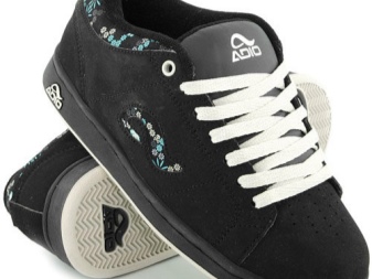 - For skateboarding (skater). Skate shoes are constantly in contact with the emery surface of the board, so they must be made of extra strong materials. Also, they must be well ventilated, for this is used "breathing" material or perforation. Depreciation is provided by integration into the sole and insole of special instep supports and stabilizers. The tongue of the sneaker for skateboarding is soft and puffy, and the laces are thick and wide.
