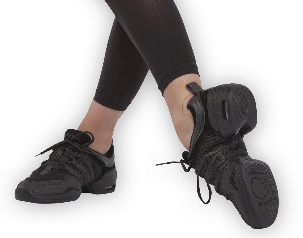- Dance. Ankle height will reduce the risk of ankle stretching. Reliable fixation of the foot with the help of lacing will not allow the leg to “dangle” during jumps and rotations. To ensure better flexibility, the sole, as a rule, consists of two completely separated parts, and the toe is more often combed. Sneakers for dancing are more common in black.
