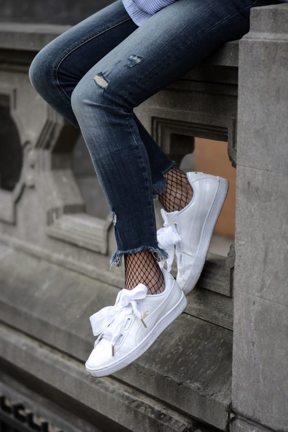 In addition, fashion trends are advised to wear sneakers, not only with jeans and sweatpants, but with skirts, light dresses and for any occasion.