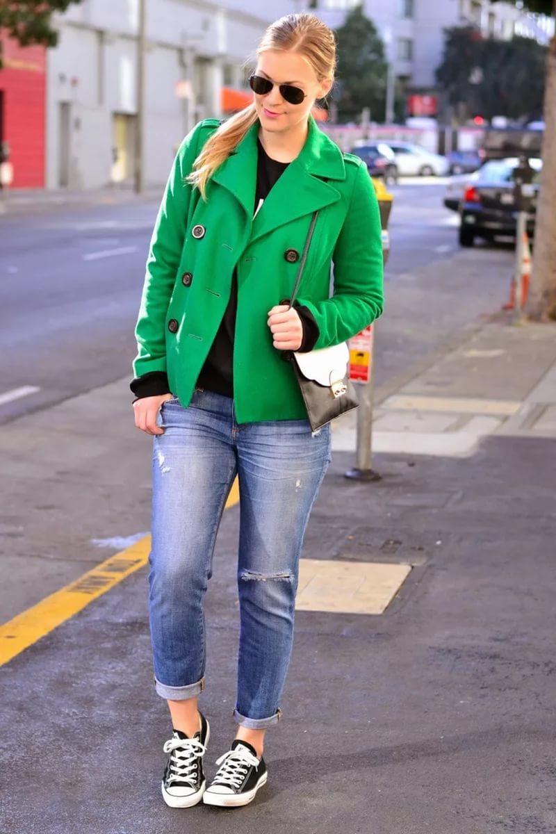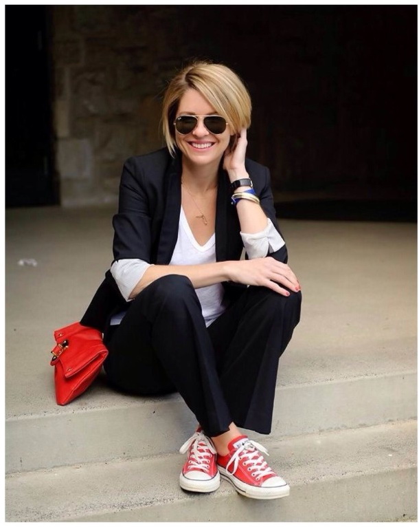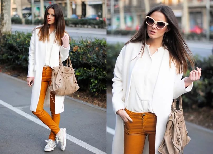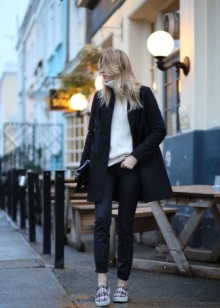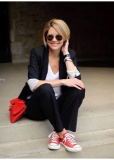 Do not be afraid to experiment with the classic style. Today, you can often see fashionistas in pants and pencil skirts with white sneakers or slippers.