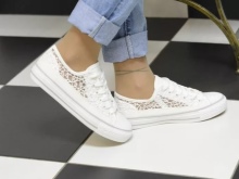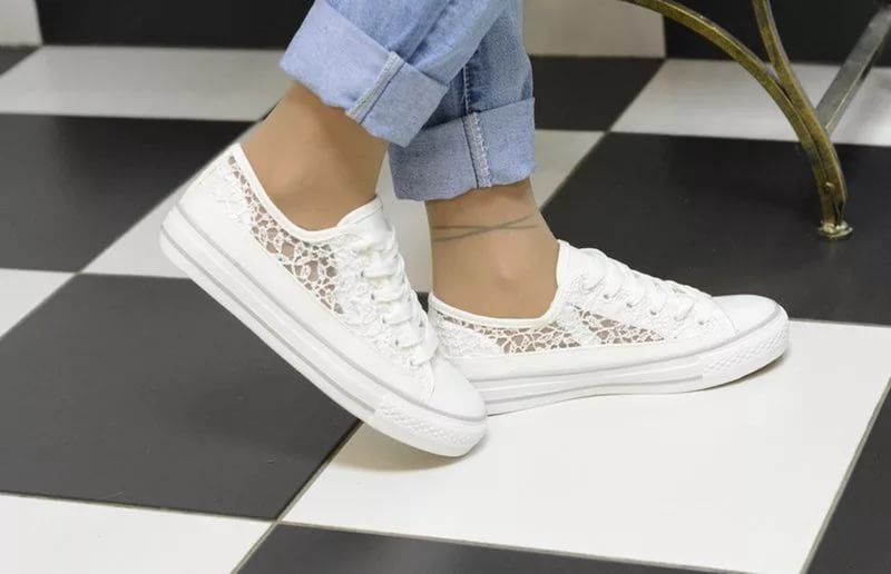 - sneakers - different from sneakers by a thin sole made of vulcanized material and the same toe, the top is textile. In classic sneakers, the top rises above the ankle, and in some models closes the calves. These shoes are especially loved among youth subcultures.