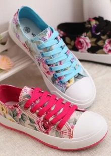 It is fashionable to wear textile sneakers with bright prints - floral, animal, geometric, polka dots, stripes - everything your heart desires, any choice.