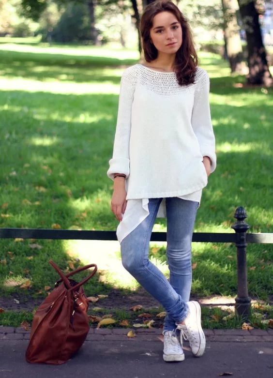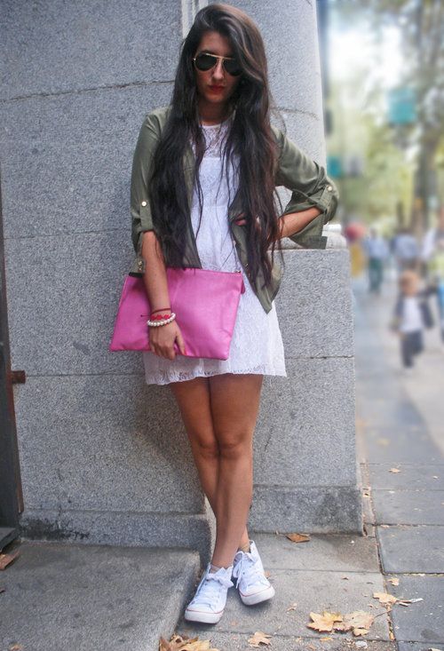 At the peak is now white rag sneakers. They can be worn in a sporty style, and combined with the style of casual. Particularly interesting is this model with dresses and skirts.