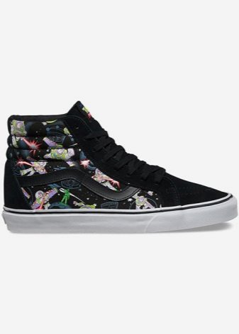 The basis for this model has become a series of cartoons "Toy Story". These are the updated high-top sneakers with black suede and canvas top. On the entire surface - the image of one of the main characters - Baze Laytera (Svetik).