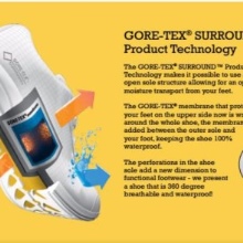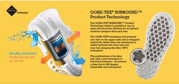 - Existence of the membrane of GORE-TEX equipped with laying for ventilation of a leg and for interfering with hit of moisture.