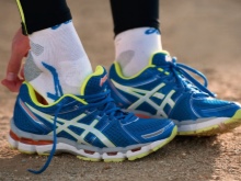 The sole should be ribbed to prevent slipping, but not with such a deep pattern as on trail running shoes. Sneakers should be “breathing”, protect your feet from deformation and have good cushioning. The most important thing is the presence of good cushioning, which will prevent hitting the feet on hard asphalt. In good sneakers special inserts are located in the heel and toe, because these areas get the maximum load.