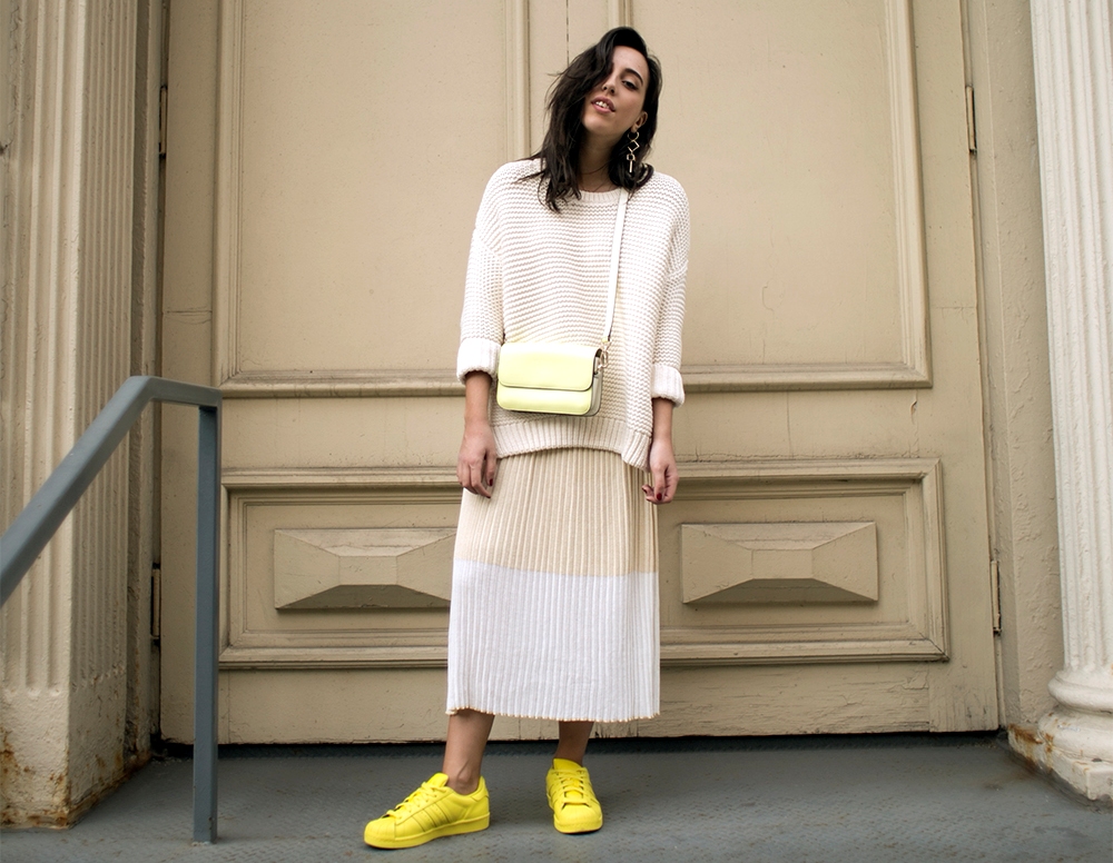 Do you want to look perfect in bright sneakers but do not know what to wear with such shoes? The answer to the question of what to wear bright fashion sneakers is simple - as you wish. Your main assistant is originality and creativity.
