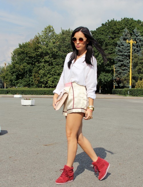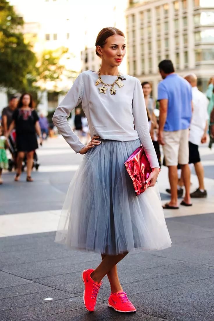 Most of the women do not know what to combine and wear bright sneakers. The growing popularity of this shoe makes fashion professionals invent new looks and styles in clothes.