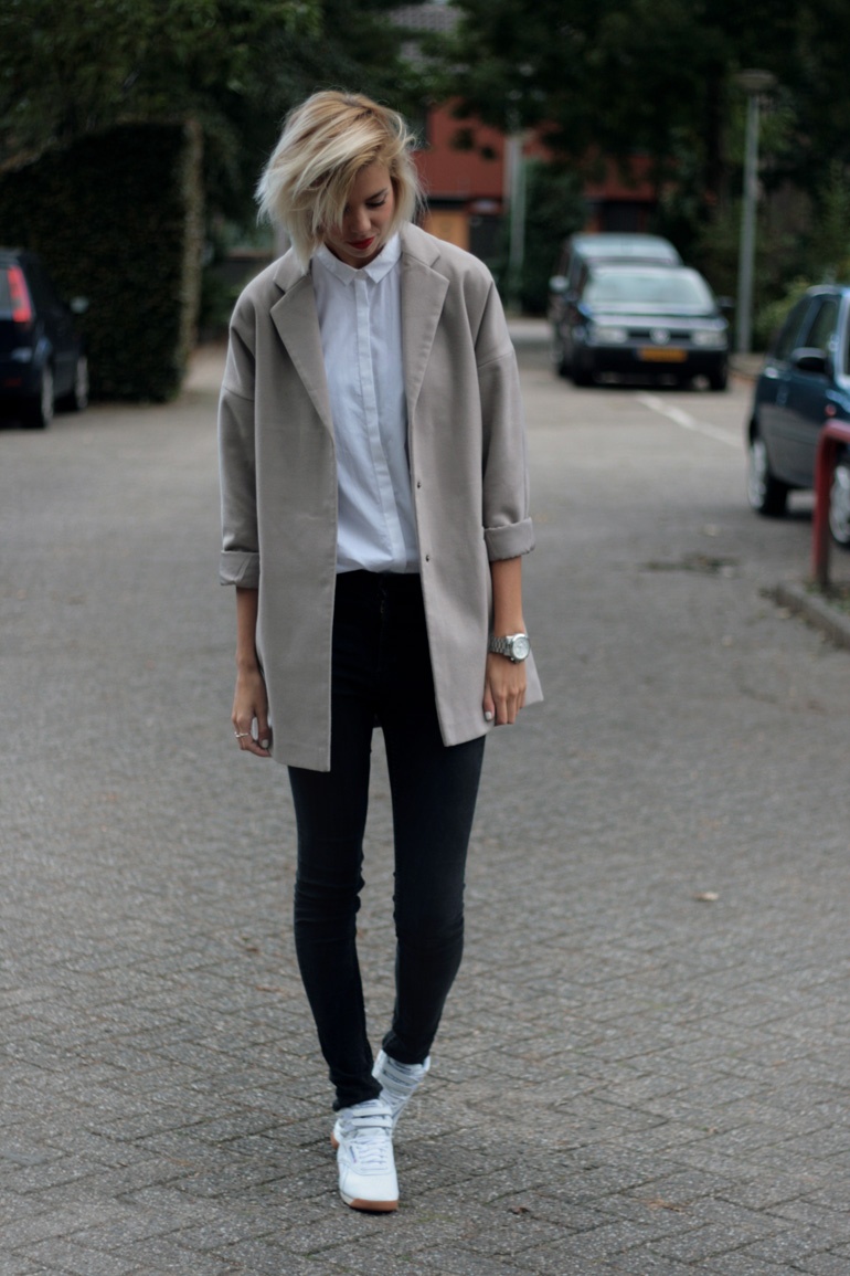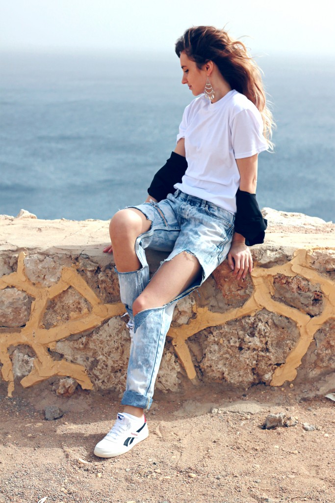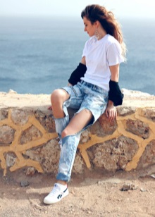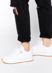 White sneakers Reebok classic, among other things, look great in image with a clear contrast, when the clothes have details of black or red color, it only emphasizes the brightness and originality of the style.