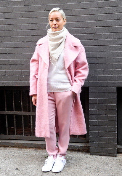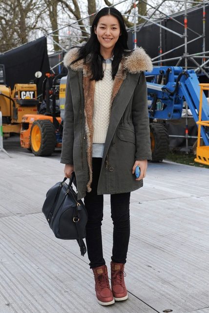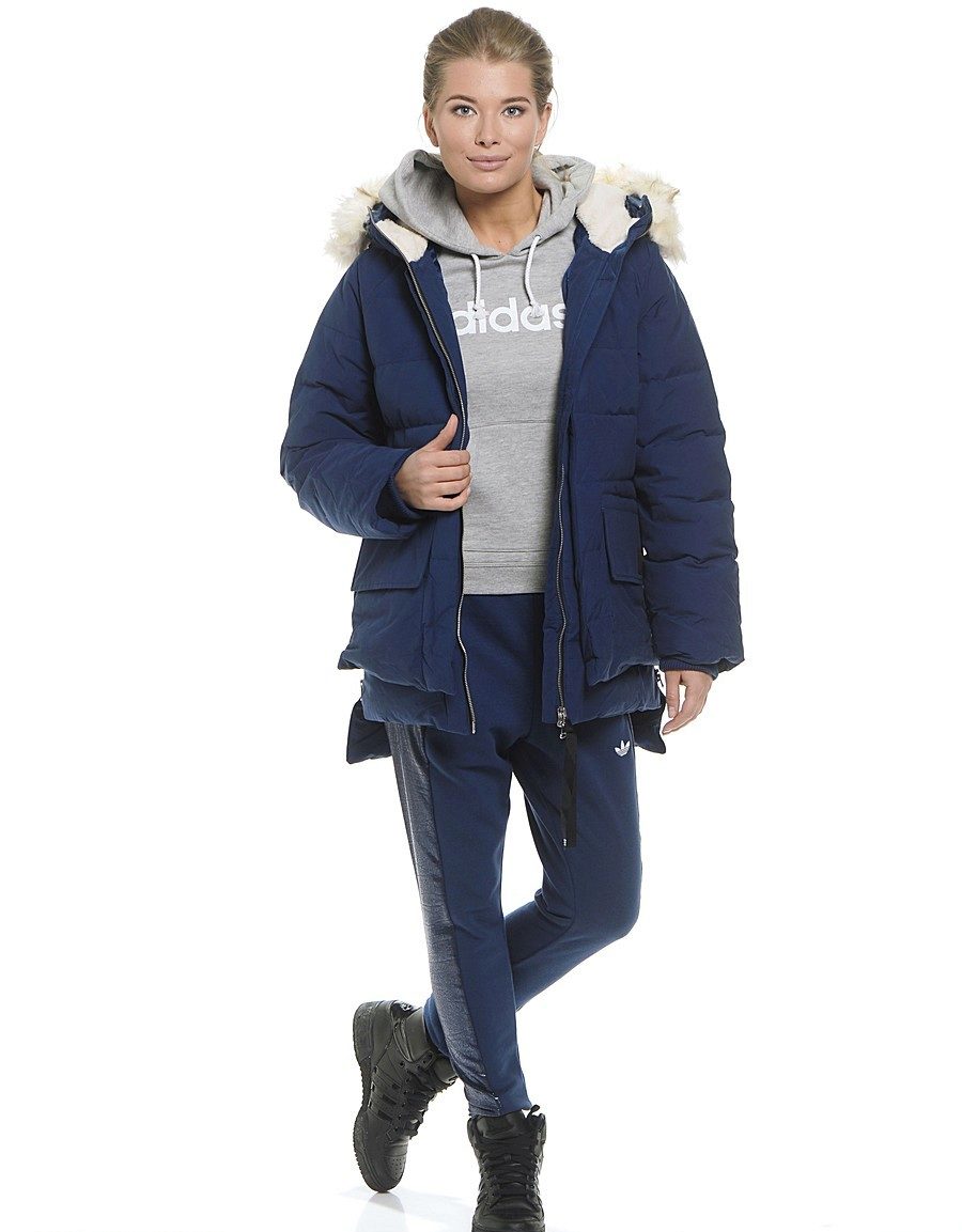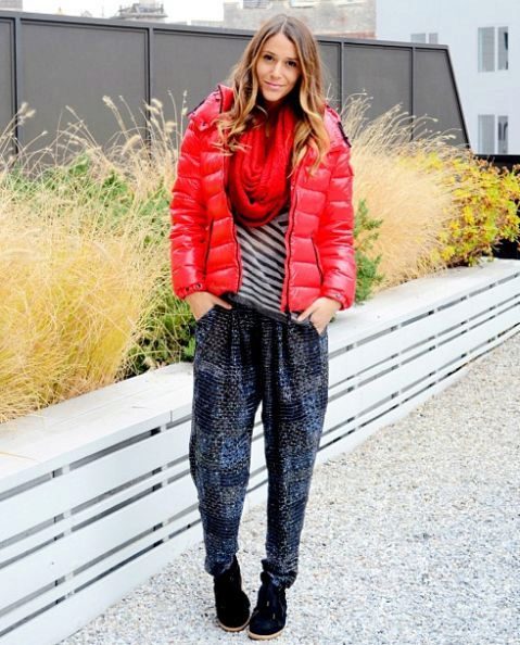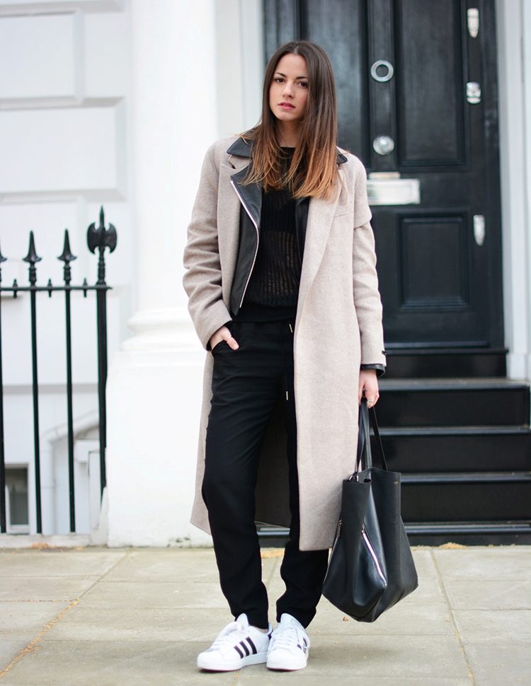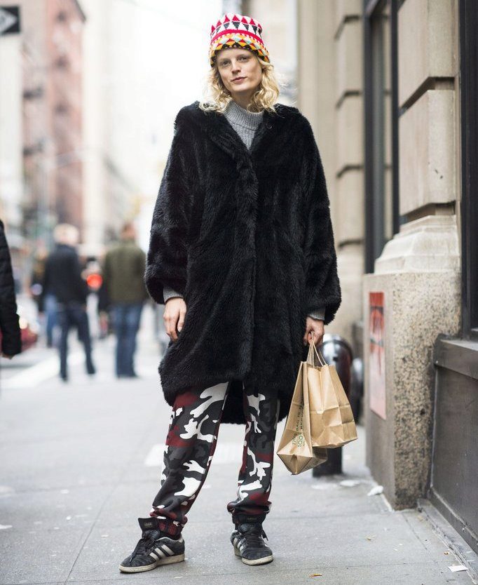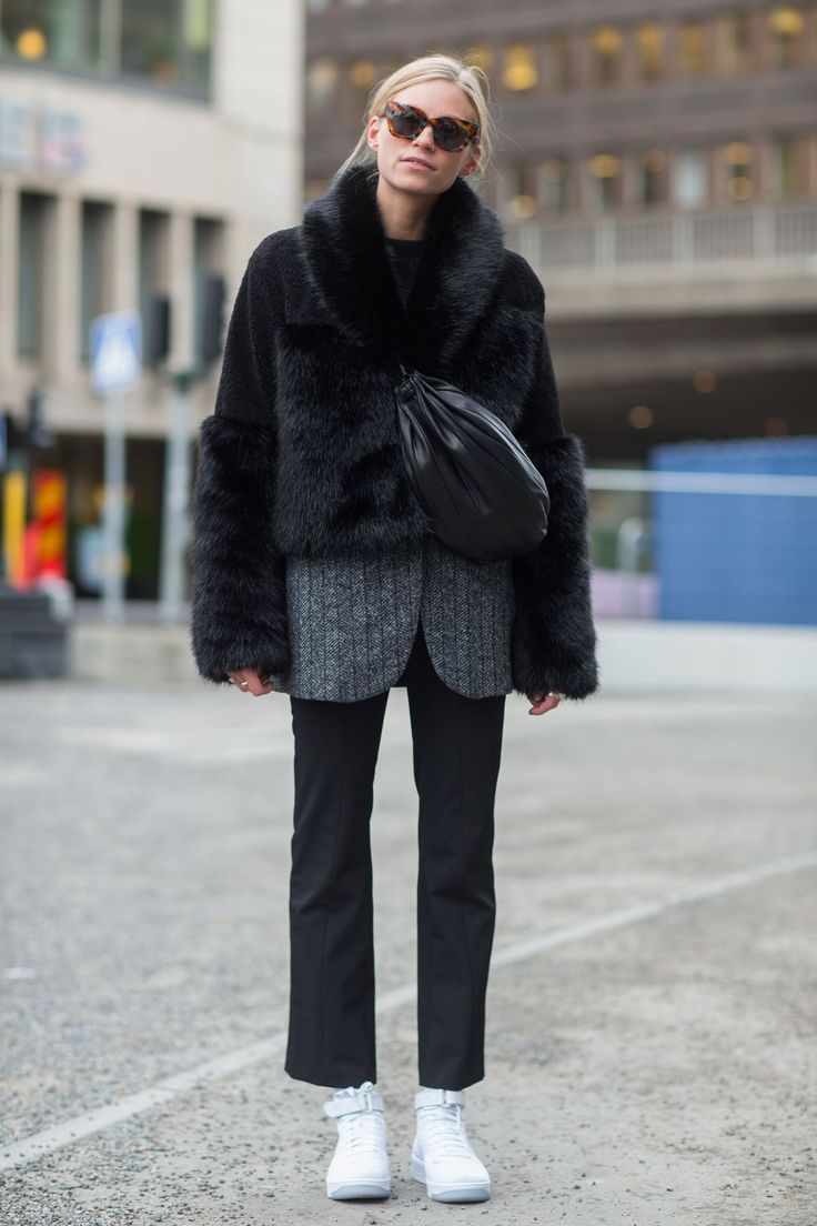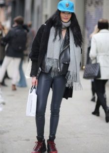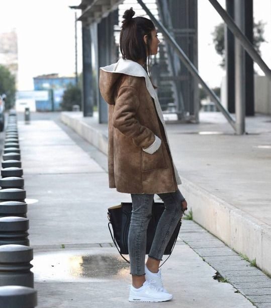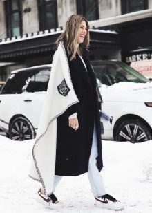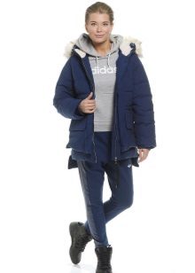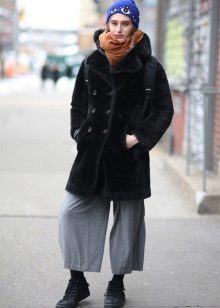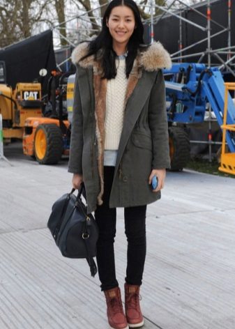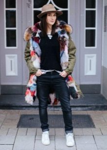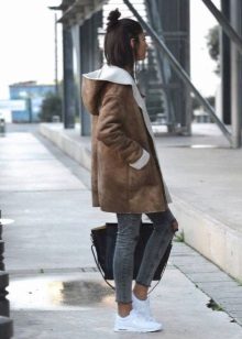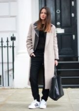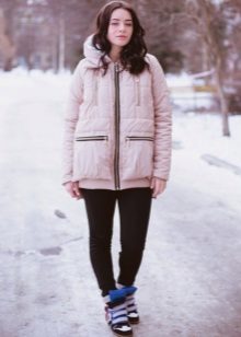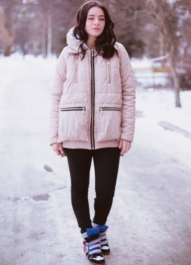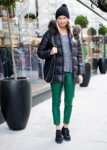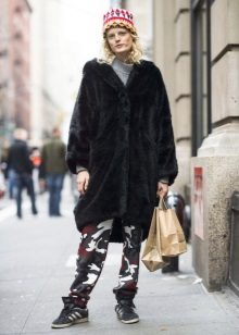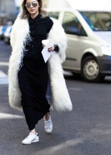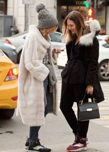 As an outerwear, a down jacket or a park, a fur vest, and also a coat of men's cut are successfully combined with warm sneakers.