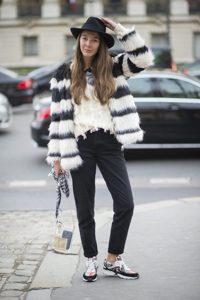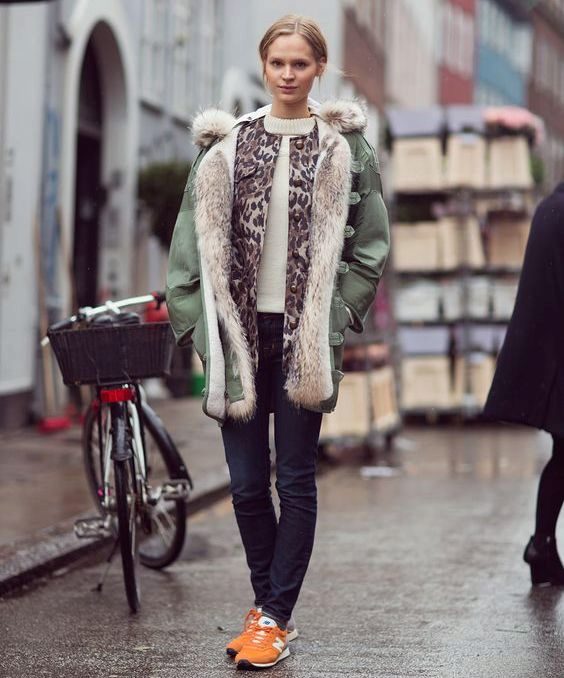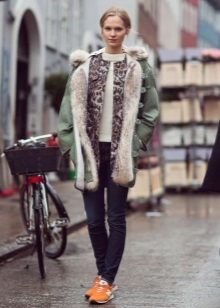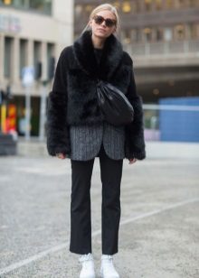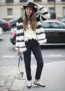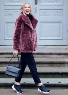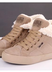 Always stylish look sneakers with fur, which are ideally combined with a down jacket. Fur trim can decorate only the edge of the top, inside there is another insulation (fleece or bike).