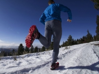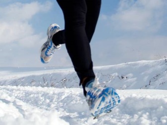 Running shoes for winter are distinguished by a reinforced heel and a flexible bow, and their socks are bullied. Usually such models are made of suede, because it is softer than leather. The sole of this shoe is made not of rubber, but of high-tech materials.