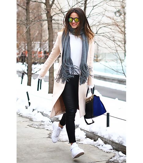 Winter sneakers are versatile shoes that come with a variety of clothes. The perfect combination would be jeans with any style. Tight trousers or leggins are also well suited, and their color and visually matching shoes will lengthen the legs visually. Complete the ensemble with a shirt, turtleneck, sweater or tunic.