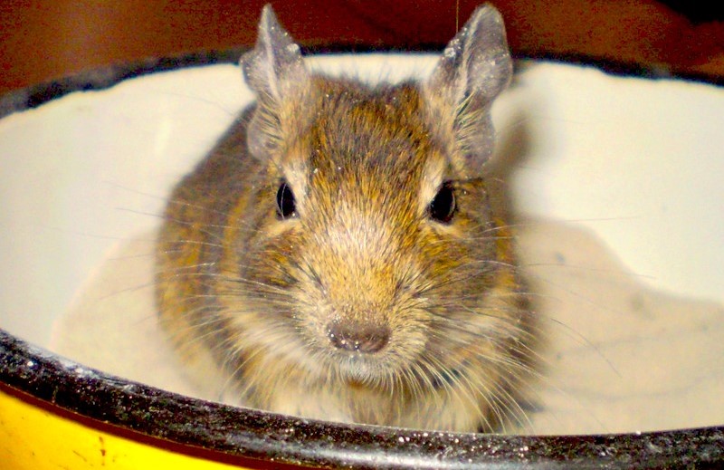 - Sharpening incisors. Degu have 8 pairs, growing teeth need periodic warm-up. If you do not provide the squirrel with suitable materials, the animal will gnaw everything that gets “under his teeth” - furniture, toys and much more.
