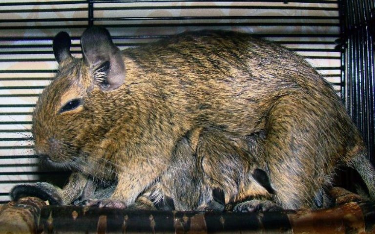 Usually the female gives birth to 1 to 10 cubs, on average the number of babies in each litter is 4-8. Keep in mind that Home births at Degu usually take place quite difficult, often with severe complications, so the female needs the help of a specialist. It is advisable to contact the veterinary hospital, since there is a high probability of extreme cases when a cesarean section or other special manipulations, as well as injections, may be required.