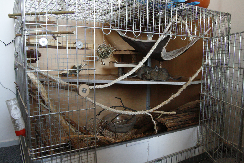 Chilean squirrels behave like children: they love to hide in all sorts of sheltersTherefore, be sure to consider the design of such places. Usually caring owners place small clay pots in a cage, snags or ornate branches - animals with great pleasure jump over them, and at the same time sharpen their teeth.