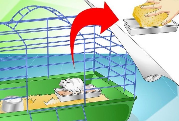 But the hygiene of the home of the animal should be given special attention. Every 2-3 days will have to change the litter, at least once every 10 days you need to wash the cage with warm water with a brush, certainly using household or antibacterial soap. At the end of the wash, wipe the tray dry, lay sheets of paper on it, and fill it with sawdust.
