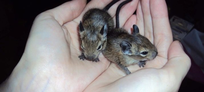By the appearance of the kids, it is almost impossible to determine who it is - a boy or a girl, because Chilean squirrels completely lack sexual dimorphism. But it is still possible to distinguish them, for this it is worth seeing the rodents down the drain. If the distance between the anus and urethra is about the little finger, then most likely the male is in front of you, and if this area is almost invisible to the eye, you are dealing with a young female.