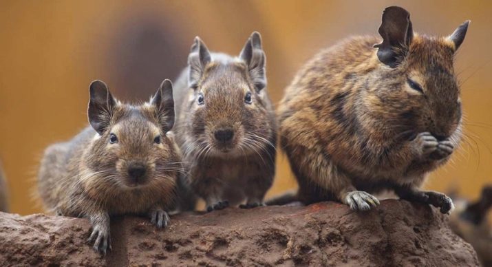 The rodent is pretty bad at seeing, which is explained by the peculiarities of the structure and placement of the eyes, however, this is more than offset by a perfect sense of smell and good hearing. Under natural conditions, degus can orient themselves not only in the light, but also in the dark.