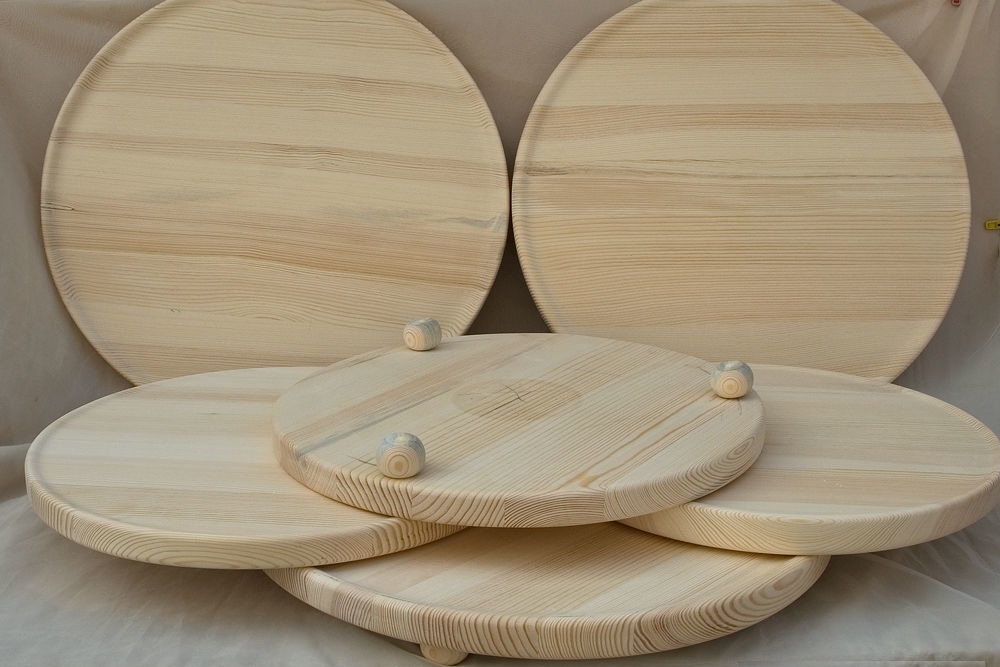 Rotating round tray - the aesthetics of the proper table setting, and if it consists of several floors, then this design looks very impressive and rich. Round trays without legs and sides are called stand, they are very convenient. The stand serves as a place for mugs and plates and does not allow high temperatures to damage the coating of furniture.