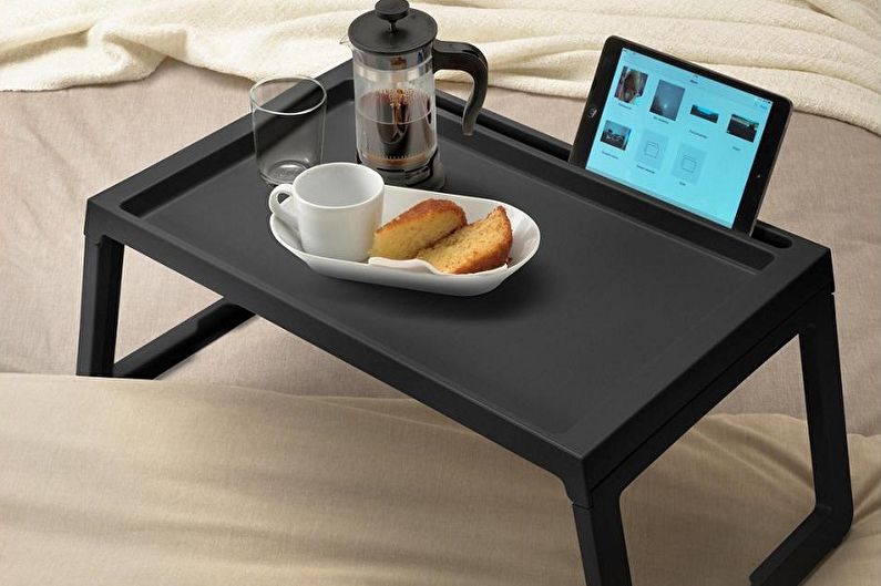 If there are legs or a pillow, then breakfast, lunch and dinner will be held comfortably in any convenient place (favorite chair or sofa). There are multi-storey wine trays resembling wood, in which you can put a bottle of your favorite wine or other drink.