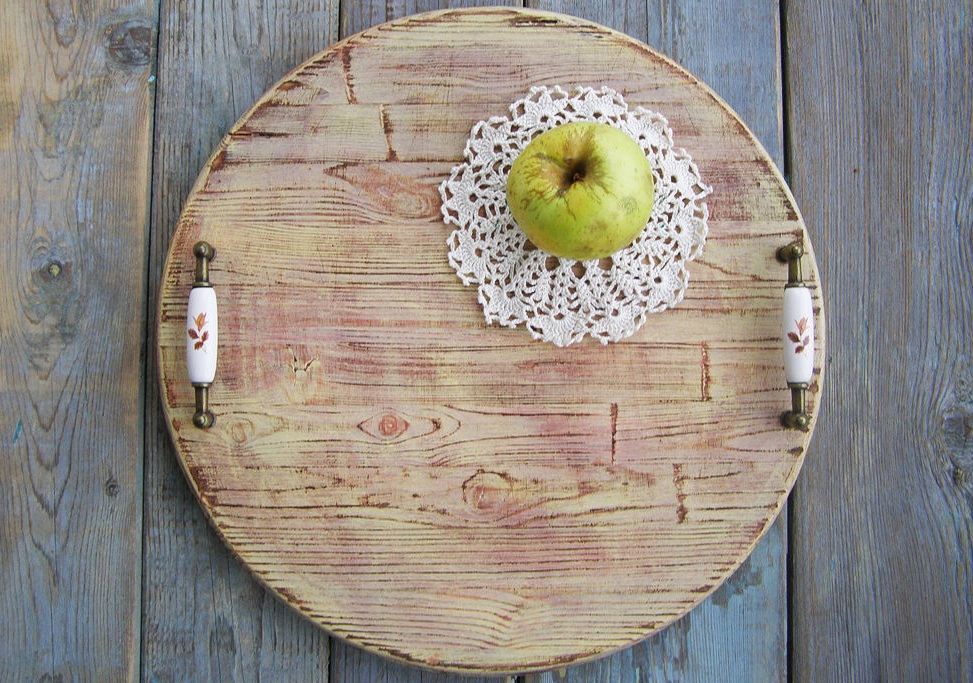 Wooden trays are practical and convenient in life. Varieties and forms expand their field of application. A beautiful and bright hand-made version can be a wonderful gift or accessory in your home. At the request of the owner, it can be decorated with photographs, drawings, inscriptions or appliqués.