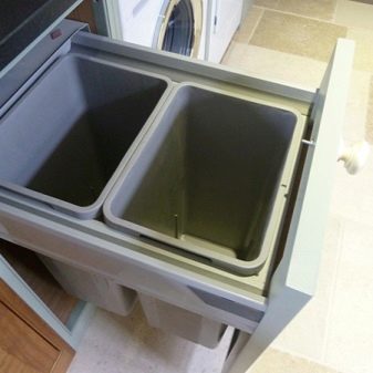 In the kitchen, washing dishes, and you need to go somewhere leftover food. That is why it would be very convenient to have special buckets or containers at hand.