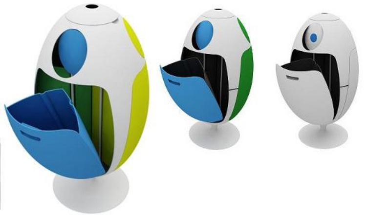 The designer, who lives in Italy, has created an interesting solution for garbage collection. This unit looks like an egg that opens on three sides. Of course, it is convenient. Such an egg, not only that does not allow to distribute smells, but also takes quite a bit of space in space. That is why it is convenient, beautiful, and very environmentally friendly at the same time. In addition, the design solution itself is very beautiful.