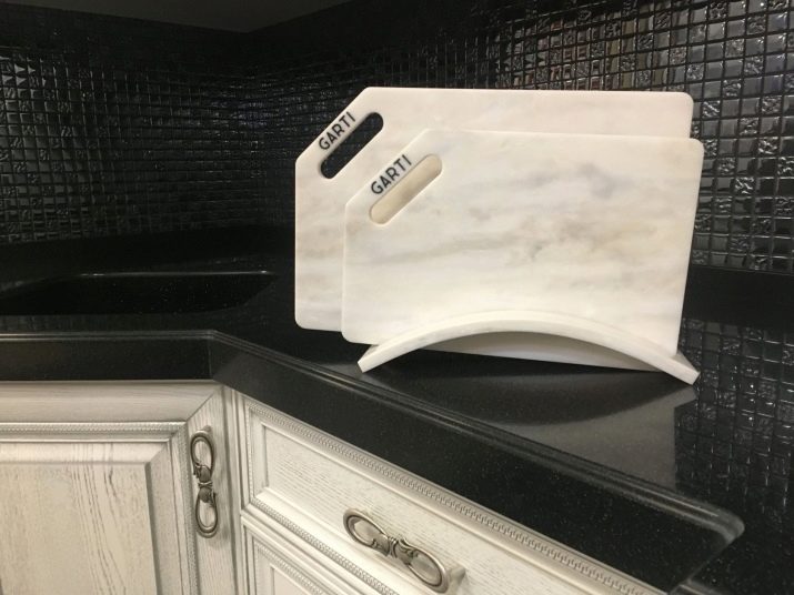 In general, stone cutting boards do not require any special storage conditions. For convenience, many of them are equipped with special handles or rings, with which the product can be mounted on the kitchen wall. In the absence of such elements, the boards can be stored in boxes or simply on the working surface of the table top.