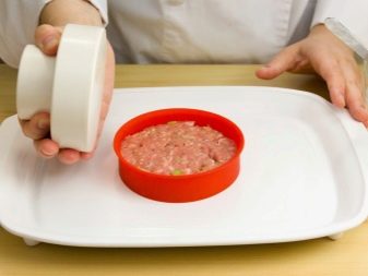 The operations are simple, they are repeated the same way, they take a little time to complete. Cutlets are obtained the same size, usually about 10-12 cm in diameter. Such blanks are designed for use in hamburgers. Recently, molds with a variable size have appeared on the market.