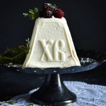 The shape is characterized by holes from the bottom and internal grooves, as the cottage cheese, in order to produce a product, must give off excess liquid in order for Easter to be as dense as possible. On the side and on top of the form there are necessarily embossed patterns and letters "XB". remember, that the deeper the pattern is cut inside, the clearer it is subsequently imprinted on the curd mass.