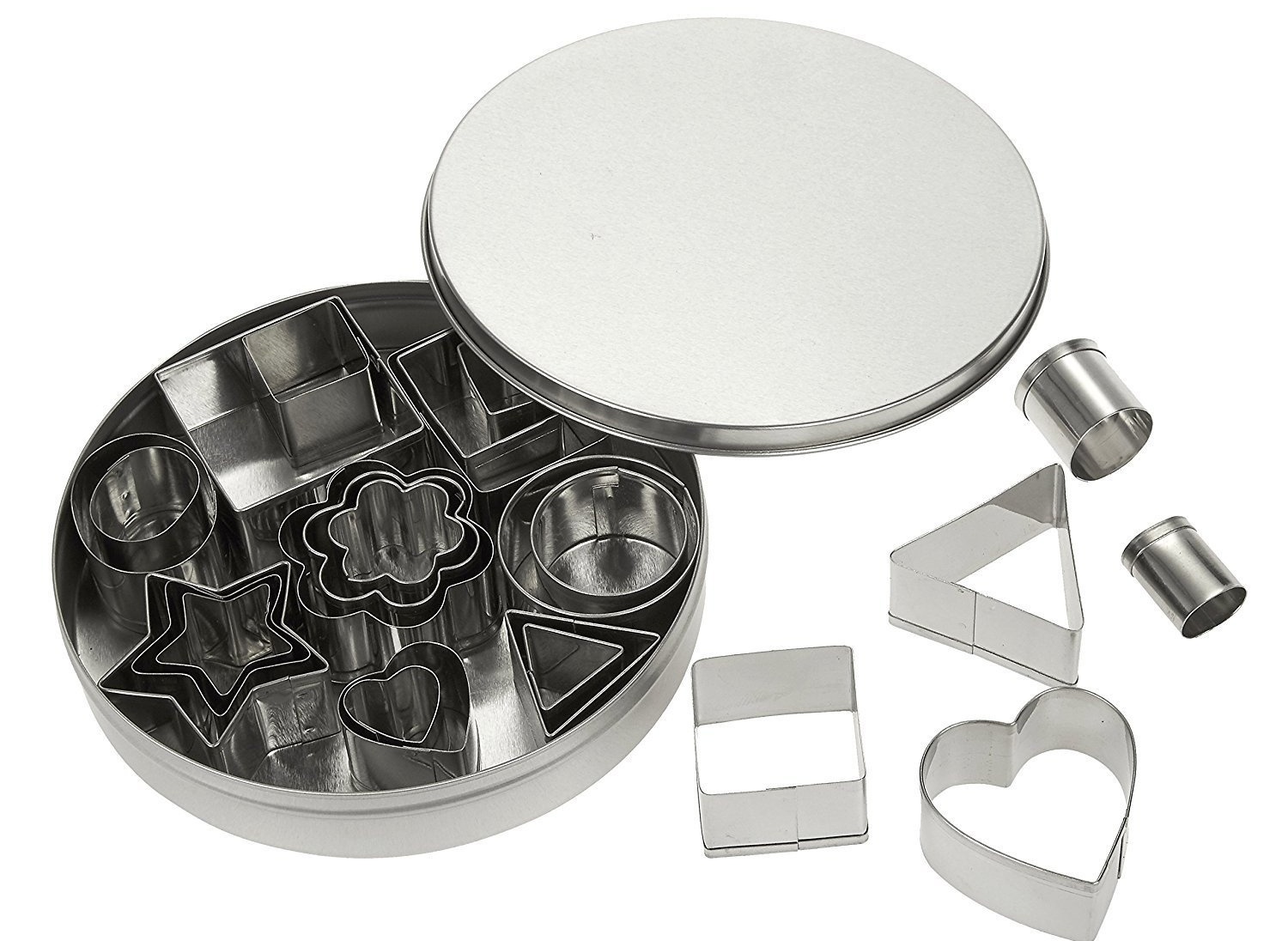 Cookie cutters sell individually or in sets. Products made from various materials. They come in different sizes and themes.