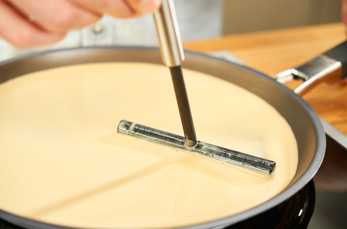For baking thin pancakes came up T-shaped spatula - pancake dispenser. It is a cylinder with a length of 15 to 28 cm on a long handle.