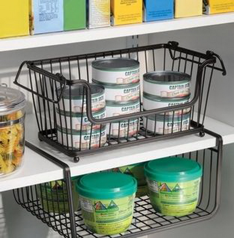 - Wire or wicker baskets for storage. Ideal - baskets made from natural materials, such as vines. The advantage of such containers is air permeability and the absence of large holes, which helps to keep the kitchen clean.
