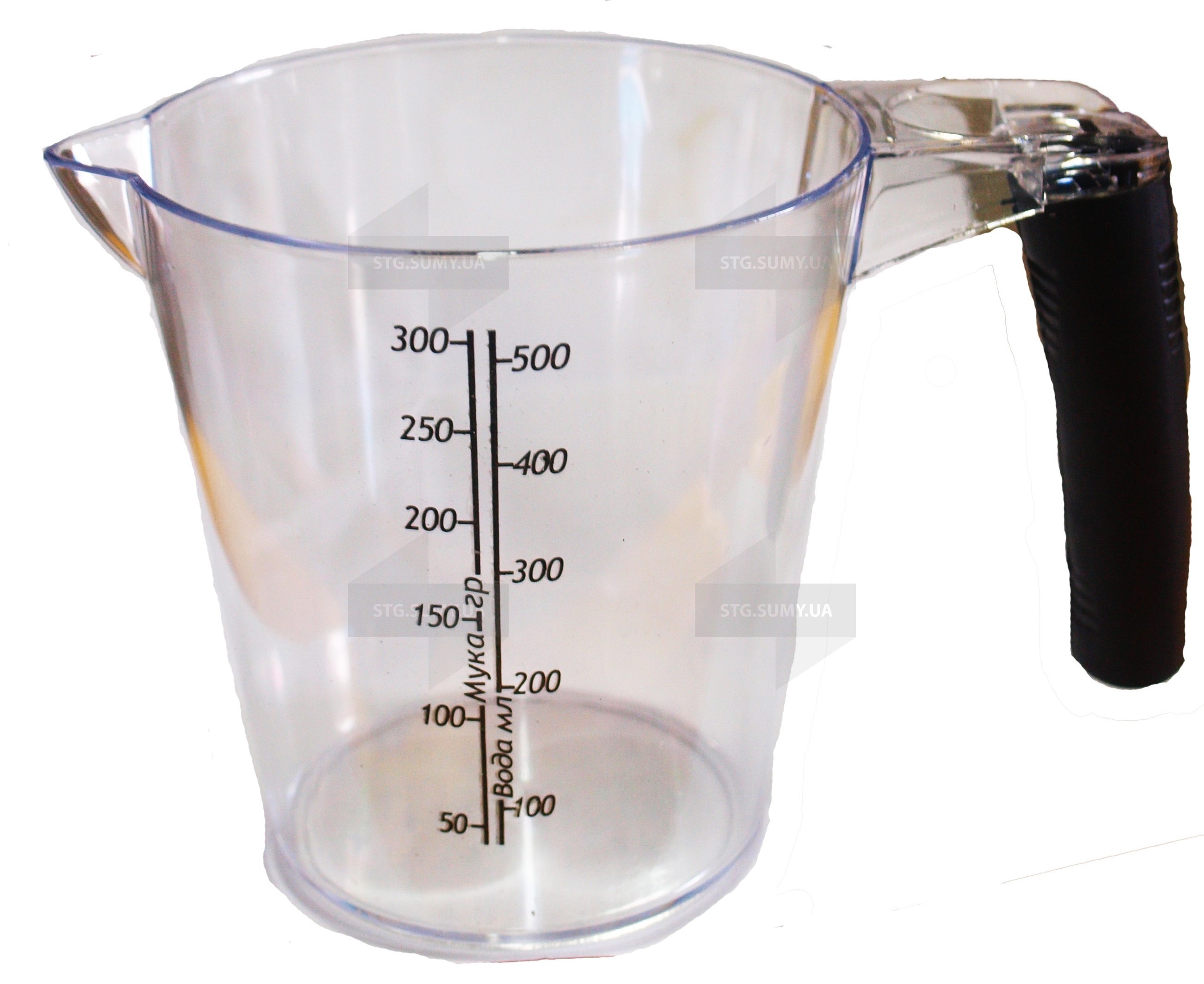 A 0.5 liter safe plastic container can be used to measure liquid and bulk ingredients. The body of the tank is transparent, which greatly simplifies operation. Tara is easy to clean additionally equipped with a rubberized layer on the bottom, which prevents the container from sliding on the surface.