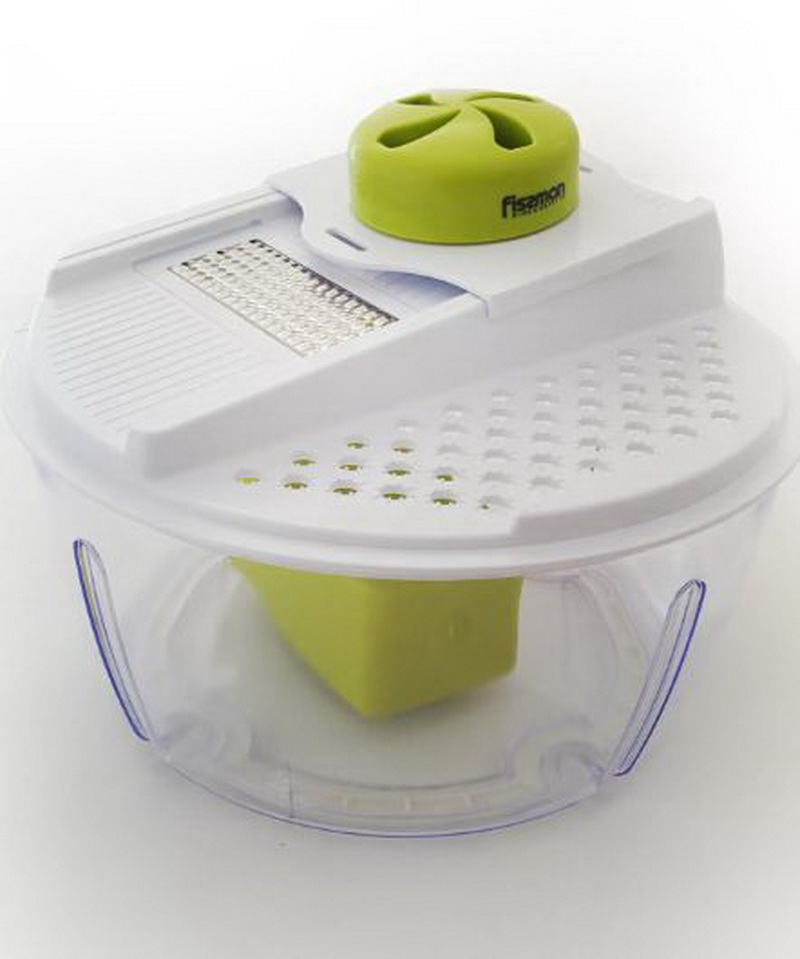 Someone gives preference to mechanical vegetable cutters, someone likes electric types more, but in this and in another case there are winners, whose popularity does not have to be doubted. Most affordable and compact in size vegetable cutter Fissman. Despite its small size (13x7), it is convenient to use.