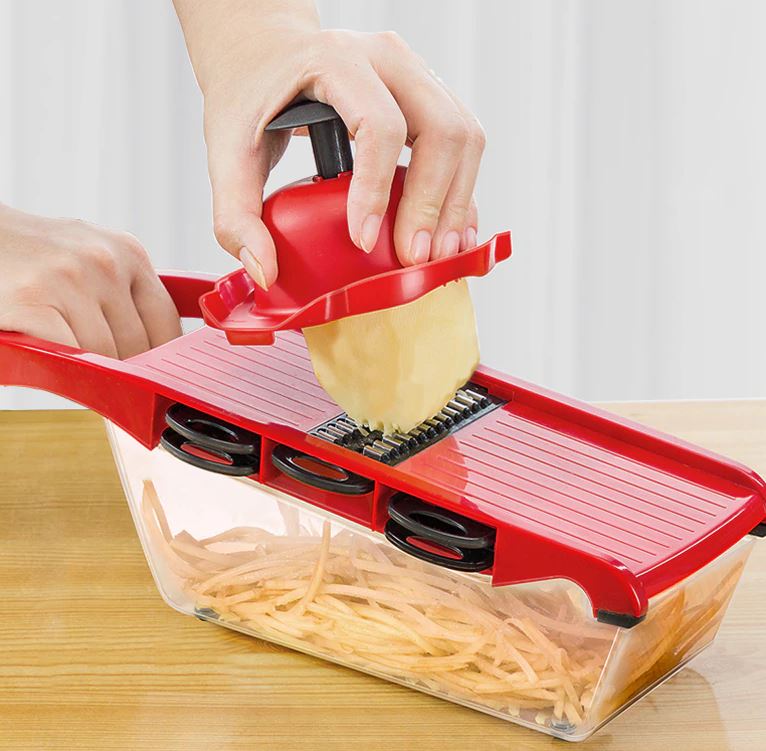 Vegetable Slicer according to the principle of operation, it resembles a little peeler, one movement and a thin, almost transparent, slice is cut off. But there is a difference between them. With the help of a vegetable peeler, it will not be possible to give a certain shape to the product; it can cut only with thin shapeless ribbons. And with the help of a slicer, vegetables and fruits can not only be thinly sliced, but also shaped into straws, a circle or a plate.