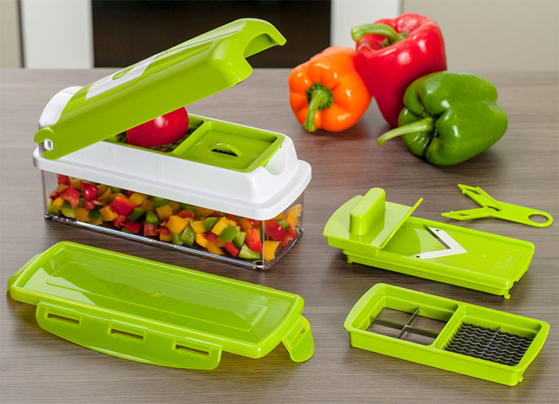 Mechanical Vegetable Cutter Nicer Dicer Plus at a cost slightly higher than previous models, but its functionality is better. Included are:
