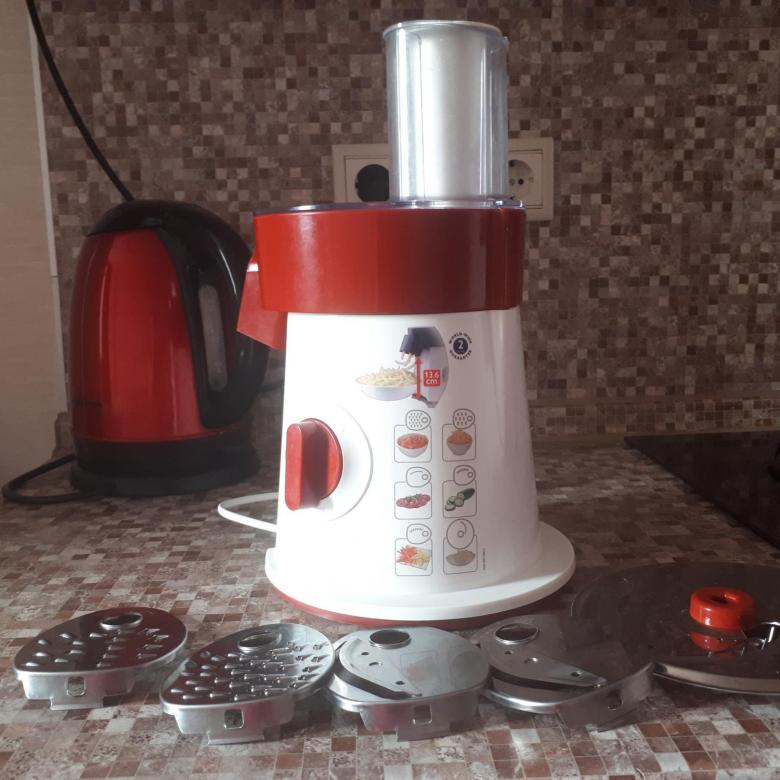 Very decent design for compact multi-cutters from Chinese manufacturers. Redmond RKA-FP4. It works very quickly, it takes literally a few seconds to prepare a large dish. Nozzles, and they are included in the kit 4 types, cope well with products of any density. The built-in protection protects the vegetable cutter from overheating, which undoubtedly prolongs the service life of the device. The disadvantages include: