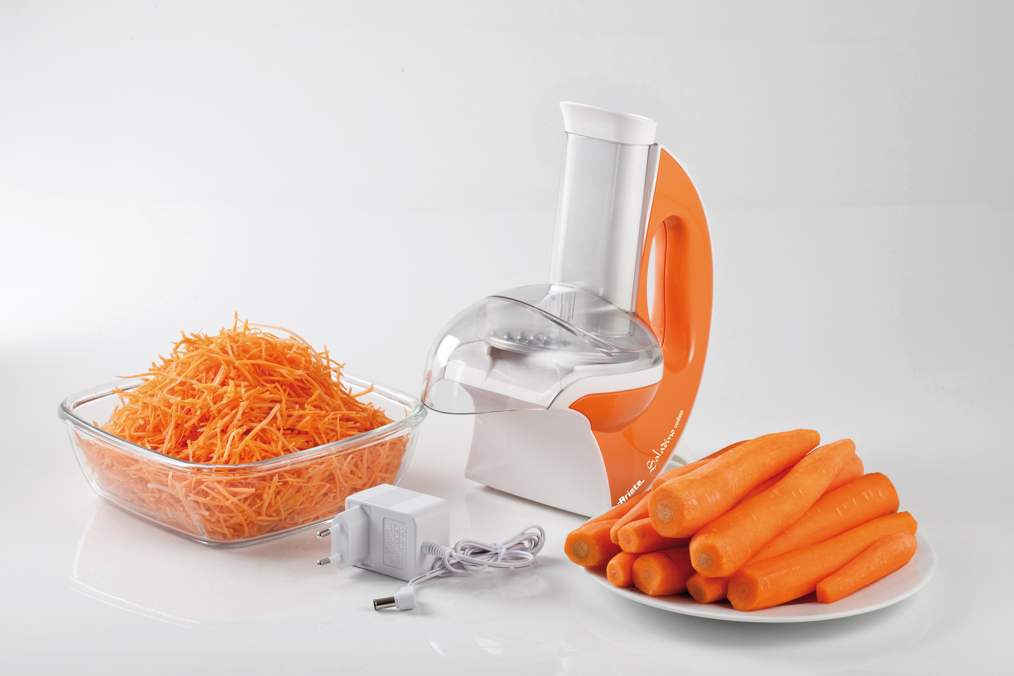 - Food processor (or electric multi-cutter) is one of the most expensive, but also the most functional types of electric cutters. Many nozzles allow you to cope with the cutting of products of any type. The device will cut with beautiful slices and hard carrots, and soft watery tomatoes. In addition, a food processor is capable of processing products much faster than other types of vegetable cutters, and this is important if you have to cook for a large number of people.