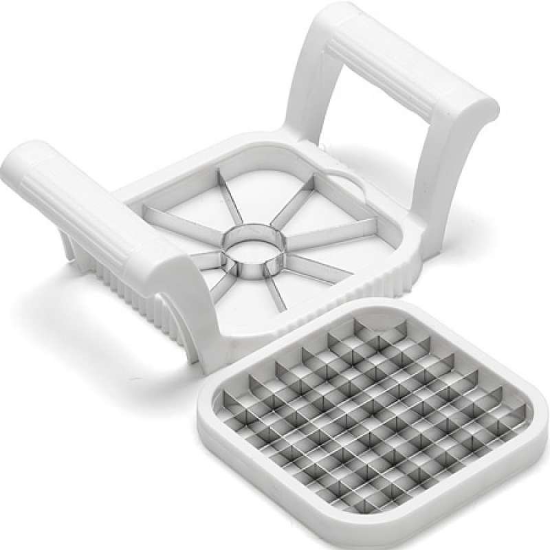 The simplest in form and operation is, of course, vegetable cutting machine, consisting of a metal plate with a certain shape of holes and a plastic or metal body that performs the carrier function. In order to cut the product into even cubes, you must first attach it to the grid, and only then push it. In some cases, products will have to be pre-cut into small slices, which is not very convenient.
