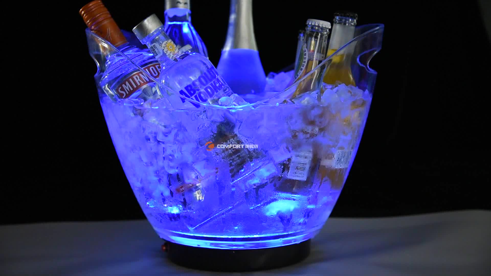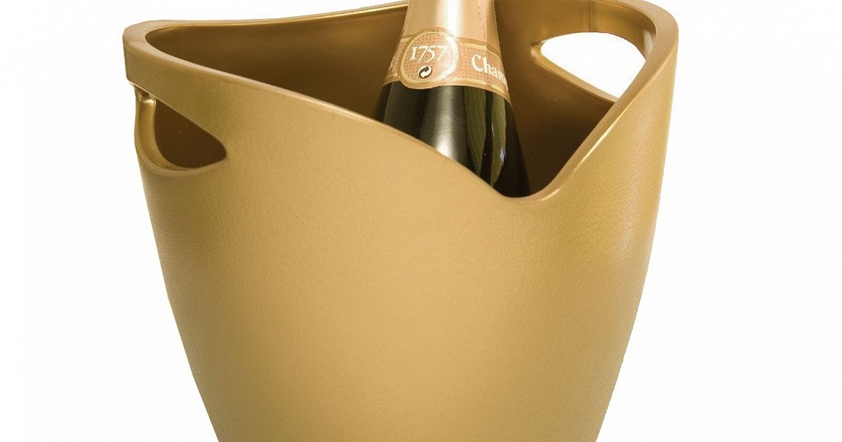 Large ice buckets are needed to cool certain beverages that are in bottles. The bucket is pre-filled with a small amount of ice, then a tissue napkin and a bottle of drink are placed there.